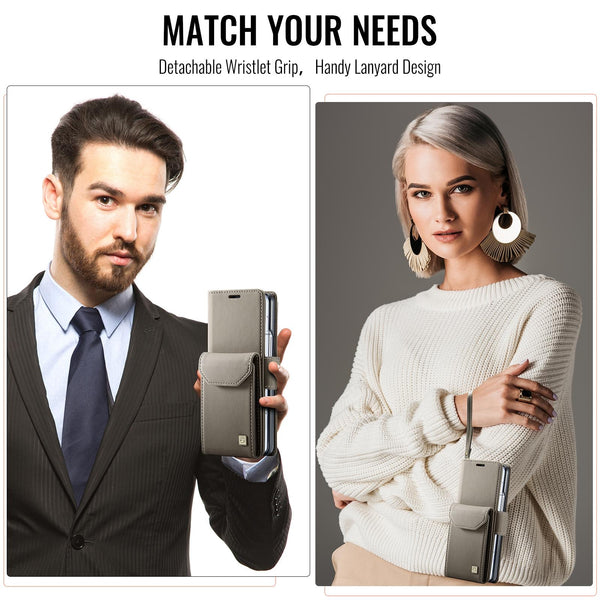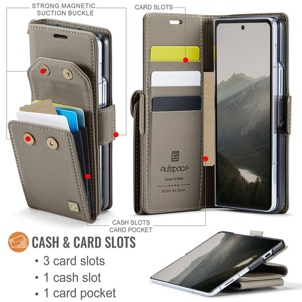 For Samsung Galaxy Z Fold5 5G AutSpace A23 Organ Card Bag Magnetic RFID PU Phone Case(Grey)