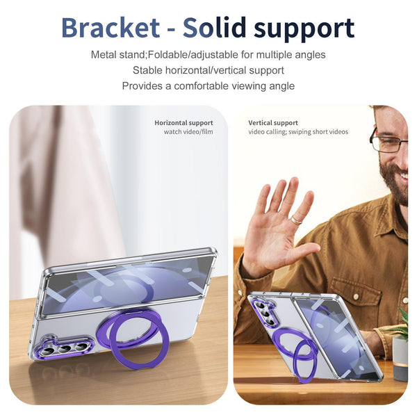 For Samsung Galaxy Z Fold5 5G Integrated Ice-feel High-transparency 360-Degree Rotating Stand MagSafe Folding Phone Case(Violet)