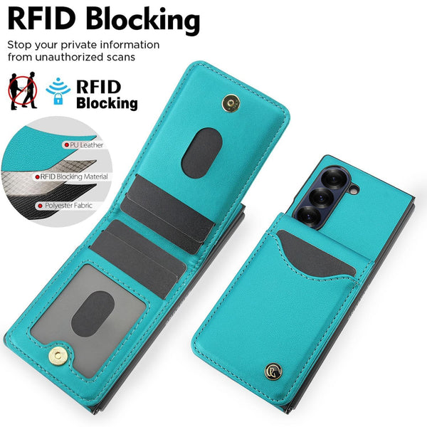 For Samsung Galaxy Z Fold5 AwQuer RFID Vertical Flip Card Bag Holder Leather Phone Case(Green)