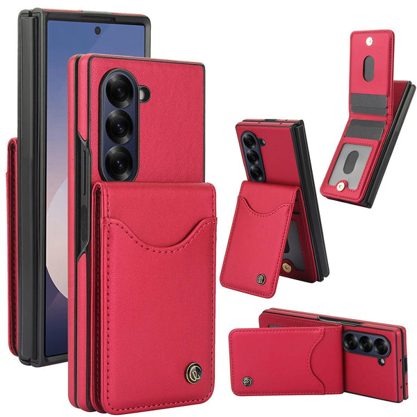 For Samsung Galaxy Z Fold5 AwQuer RFID Vertical Flip Card Bag Holder Leather Phone Case(Red)