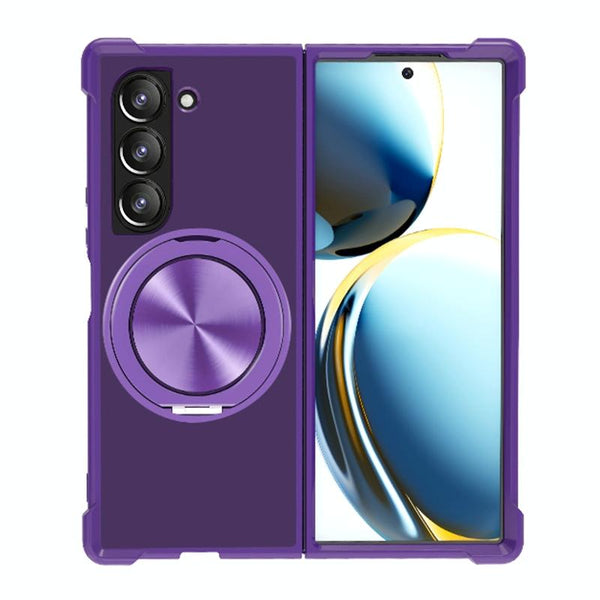 For Samsung Galaxy Z Fold5 CD Texture 360 Degree Rotating Holder MagSafe Phone Case(Purple)