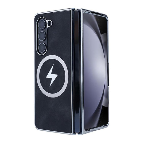 For Samsung Galaxy Z Fold5 Electroplating Lightning MagSafe Fold Full Coverage Phone Case(Black)