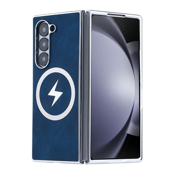 For Samsung Galaxy Z Fold5 Electroplating Lightning MagSafe Fold Full Coverage Phone Case(Blue)