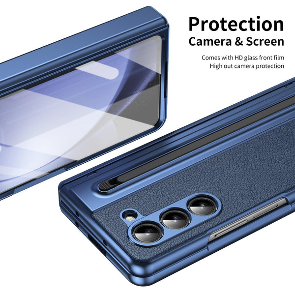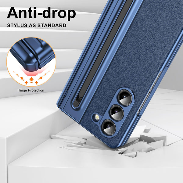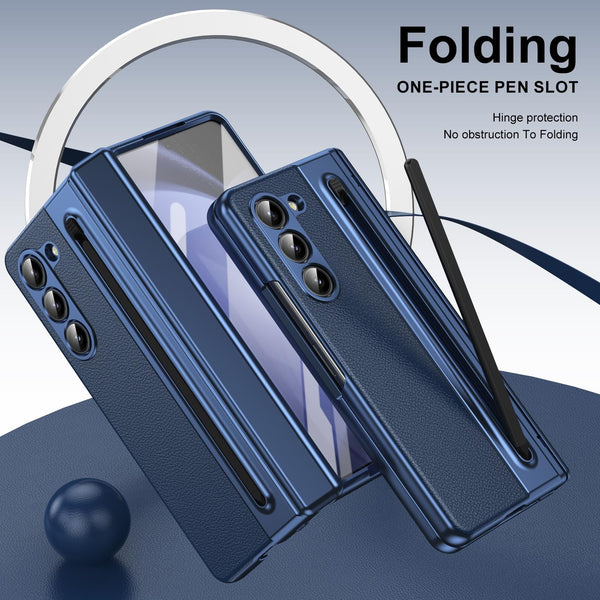 For Samsung Galaxy Z Fold5 Integrated PC + PU Phone Case with Pen / Pen Box(Blue)