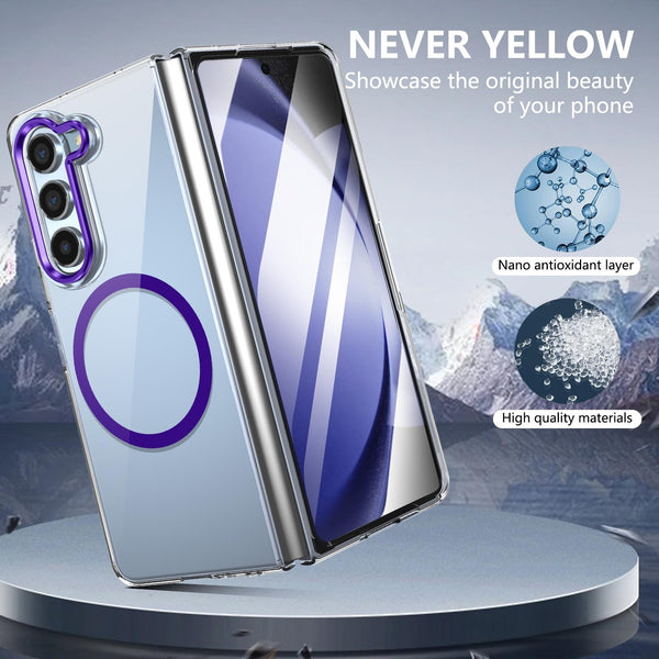 For Samsung Galaxy Z Fold5 lce Folding Series MagSafe Integrated Clear PC Phone Case(Purple)