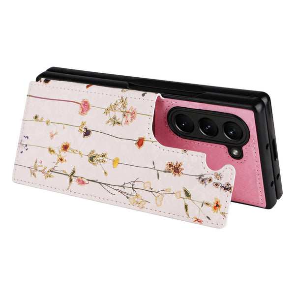 For Samsung Galaxy Z Fold5 Printed Double Buckle RFID Anti-theft Phone Case(Dried Flower World)