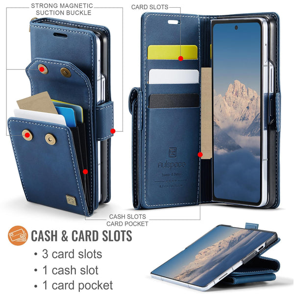 For Samsung Galaxy Z Fold6 5G AutSpace A23 Organ Card Bag Magnetic RFID PU Phone Case(Blue)