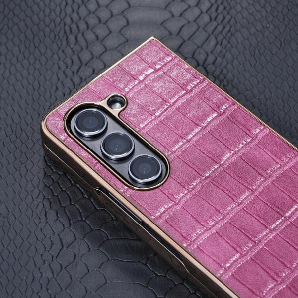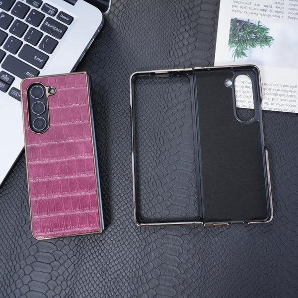 For Samsung Galaxy Z Fold6 5G Electroplated PC Crocodile Pattern Folding Phone Case(Red)
