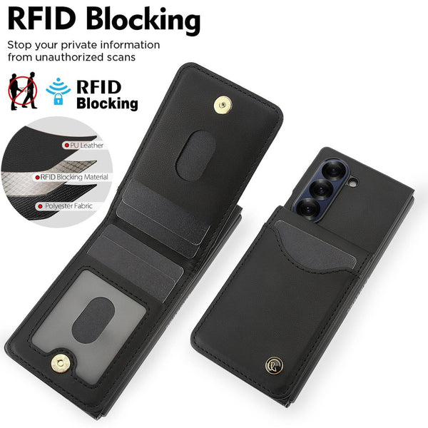 For Samsung Galaxy Z Fold6 AwQuer RFID Vertical Flip Card Bag Holder Leather Phone Case(Black)