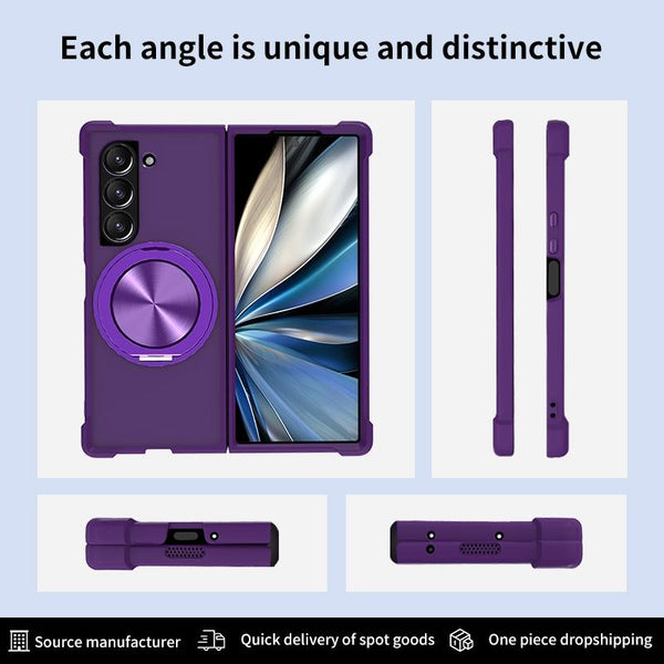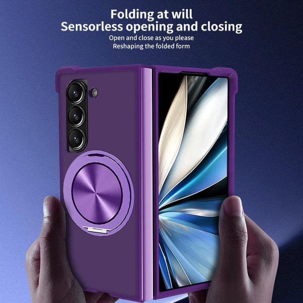 For Samsung Galaxy Z Fold6 CD Texture 360 Degree Rotating Holder MagSafe Phone Case(Black)