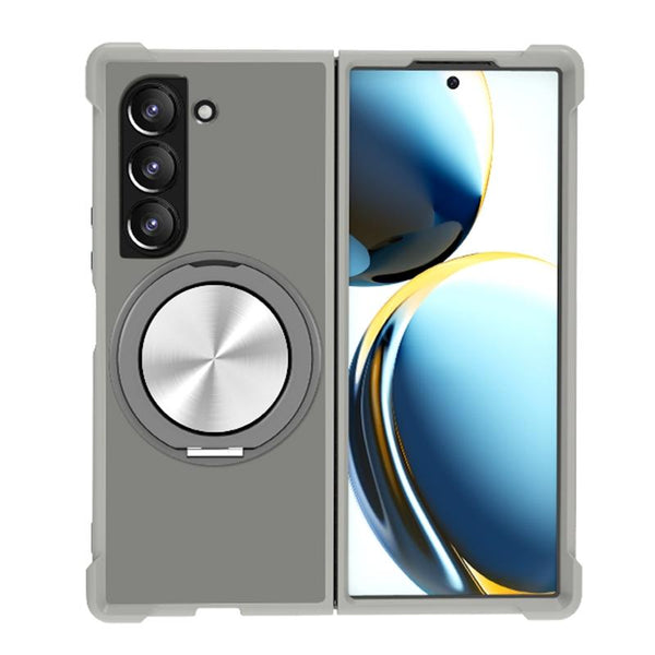 For Samsung Galaxy Z Fold6 CD Texture 360 Degree Rotating Holder MagSafe Phone Case(Grey)