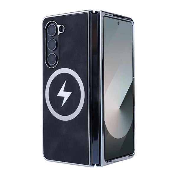 For Samsung Galaxy Z Fold6 Electroplating Lightning MagSafe Fold Full Coverage Phone Case(Black)