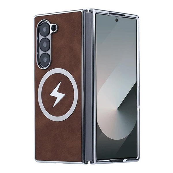 For Samsung Galaxy Z Fold6 Electroplating Lightning MagSafe Fold Full Coverage Phone Case(Brown)
