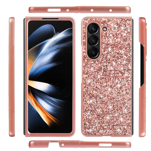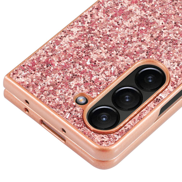 For Samsung Galaxy Z Fold6 Glitter Powder Shockproof TPU Phone Case(Rose Gold)