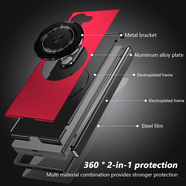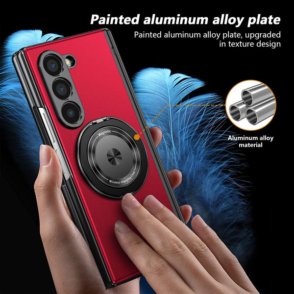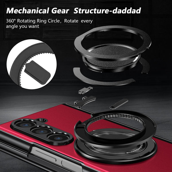 For Samsung Galaxy Z Fold6 Gold Medal Rotating Folding Series Ring Holder Phone Case(Red)