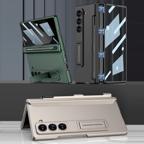 For Samsung Galaxy Z Fold6 Slim GKK Integrated Full Coverage Magnetic Fold Phone Case with Pen Slot / Pen(Night Green)