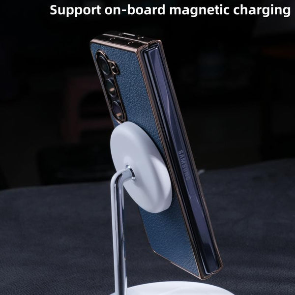 For Samsung Galaxy Z Fold6 Three Parts MagSafe Litchi Texture Fold Phone Case(Black)
