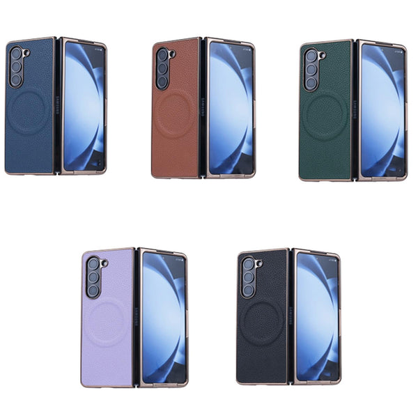 For Samsung Galaxy Z Fold6 Three Parts MagSafe Litchi Texture Fold Phone Case(Purple)