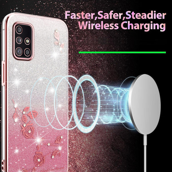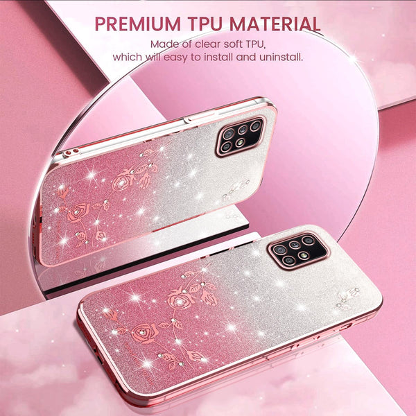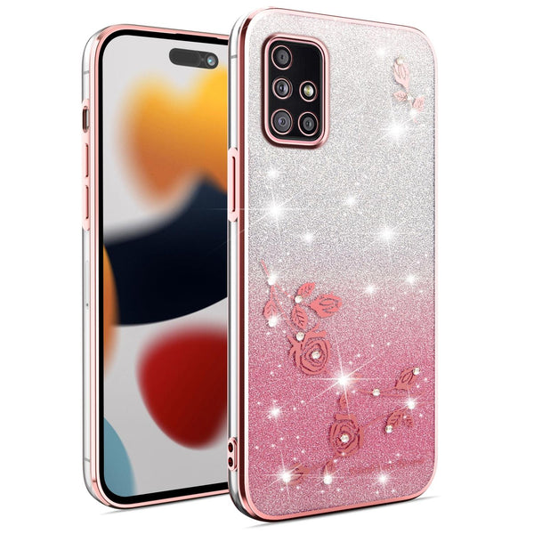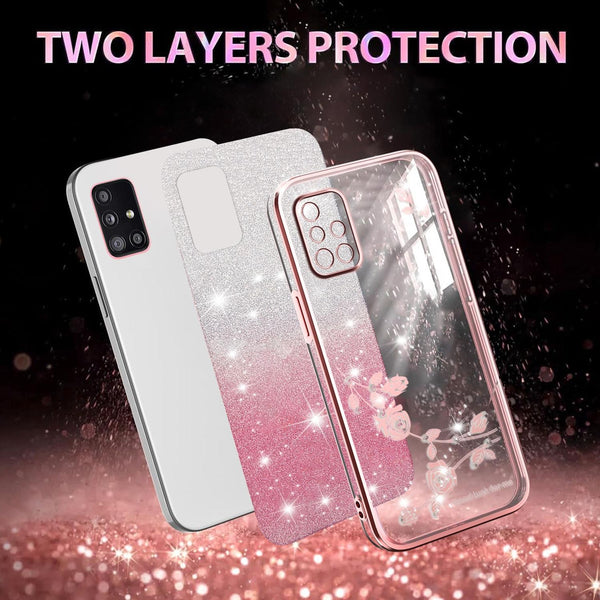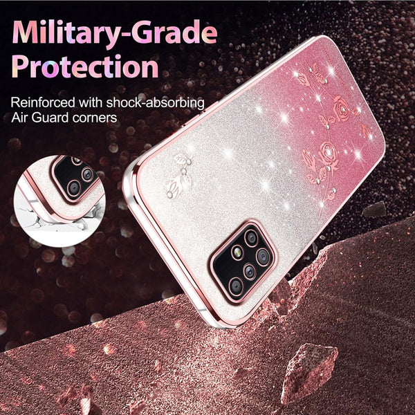 ForSamsung Galaxy A51 5G Gradient Glitter Flower All-inclusive Phone Case(Pink)