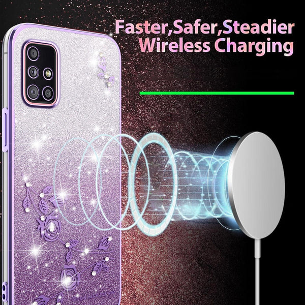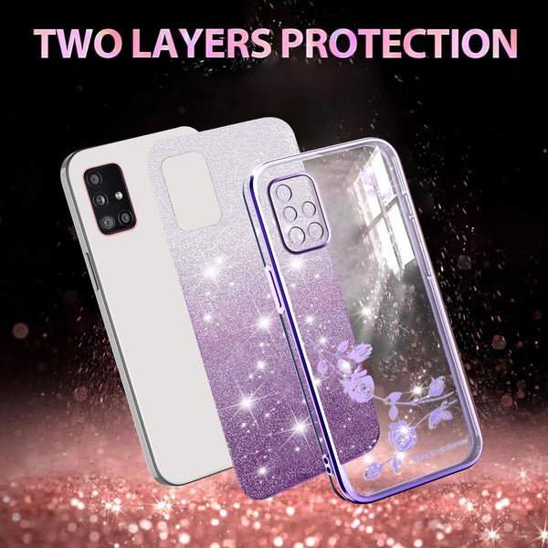 ForSamsung Galaxy A51 5G Gradient Glitter Flower All-inclusive Phone Case(Purple)