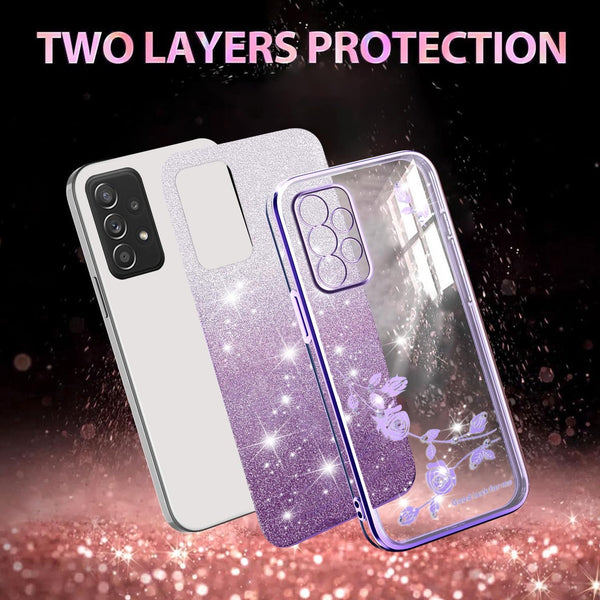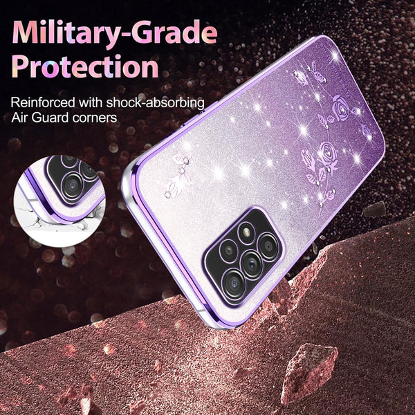 ForSamsung Galaxy A52 5G Gradient Glitter Flower All-inclusive Phone Case(Purple)