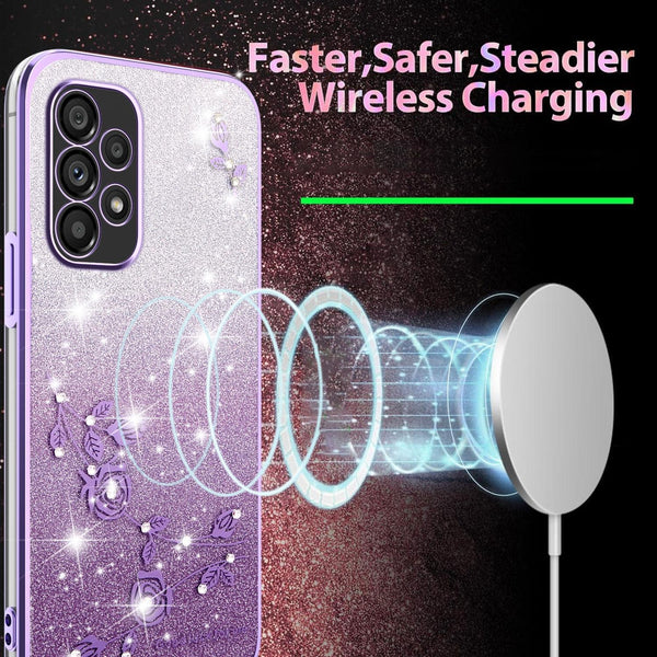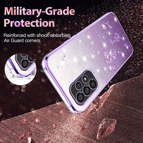 ForSamsung Galaxy A53 5G Gradient Glitter Flower All-inclusive Phone Case(Blue)