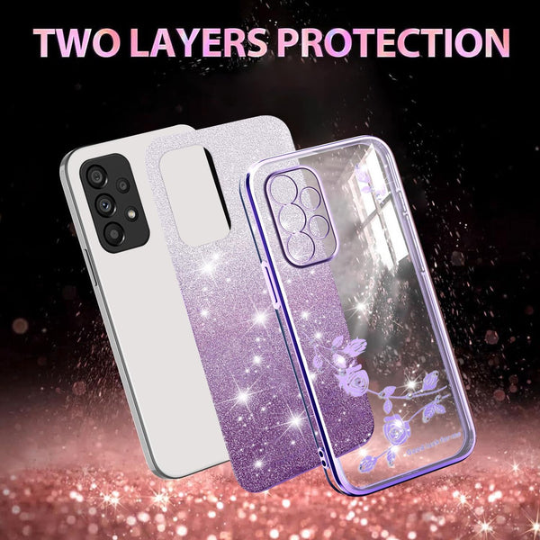 ForSamsung Galaxy A53 5G Gradient Glitter Flower All-inclusive Phone Case(Purple)