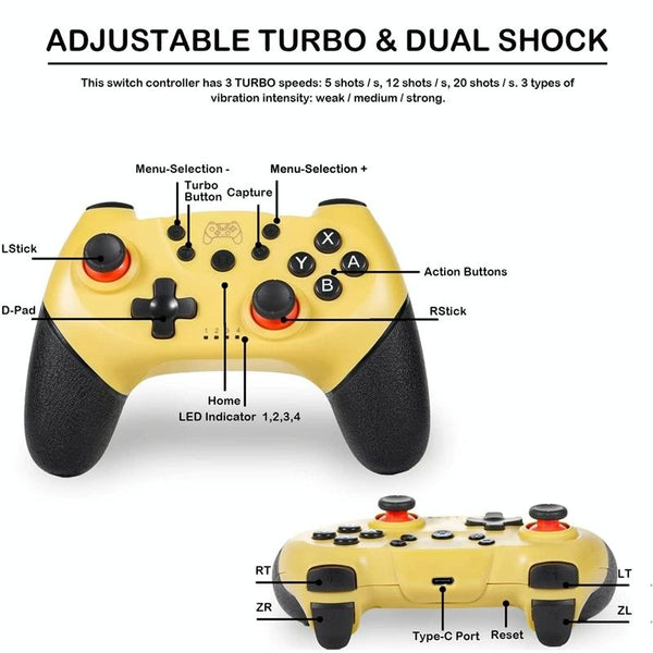 6-axis Bluetooth Joypad Gamepad Game Controller for Switch Pro(Yellow)