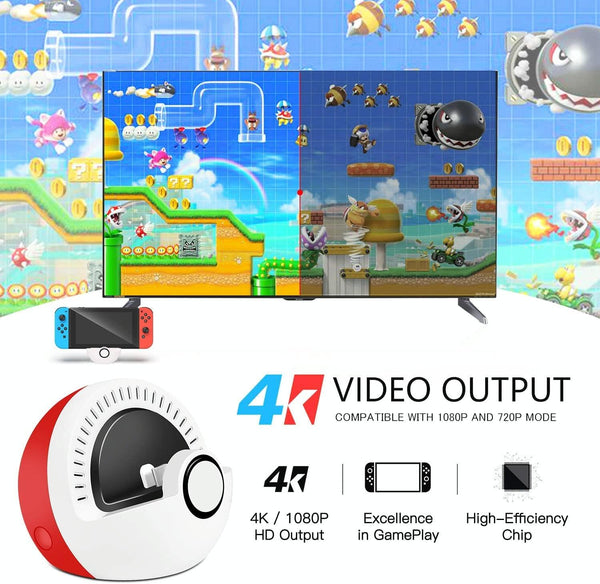 3. Play while charging, the switch base has a built-in high-efficiency chip, over-current and over-voltage protection design, fully supports two modes of charging and playback, and the heat dissipation effect is increased by 30%. For better protection, please use the original charging cable and adapter for charging, which is safe for switch consoles. (Tip: Adapters and HDMI cables are not included.)