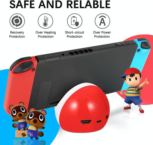 1. Creative design, the unique cute switch base is not only a switch charging base in the shape of cartoon games, the mini dome switch base is also a great replacement for older base stations, more lightweight and portable, suitable for travel and daily use.