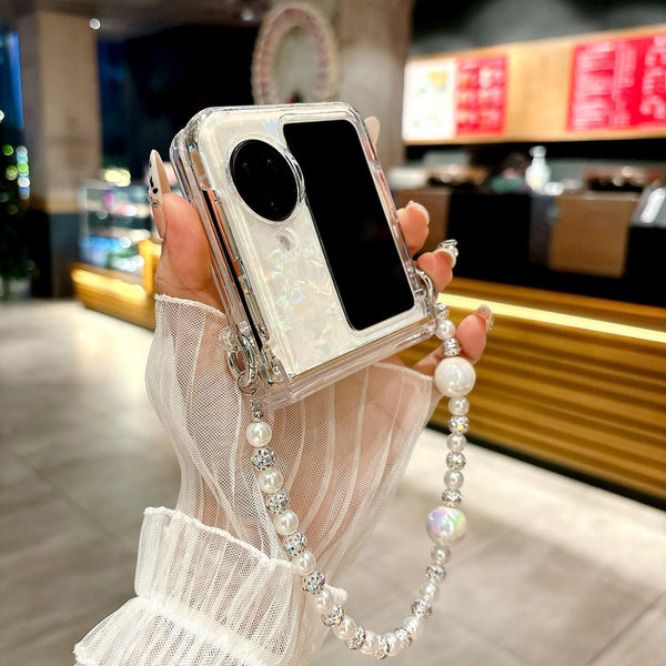 7. It comes with a dazzling pearl bracelet that helps you securely hold the phone, ensuring safe and comfortable use. You can also hang it on your wrist, making it easy to handle in various situations.