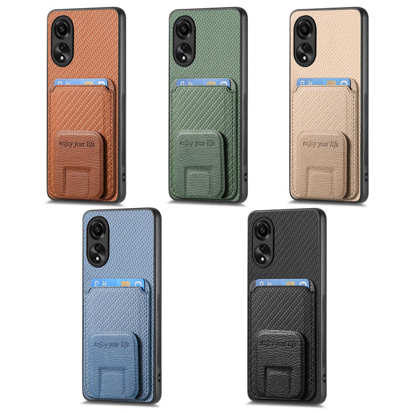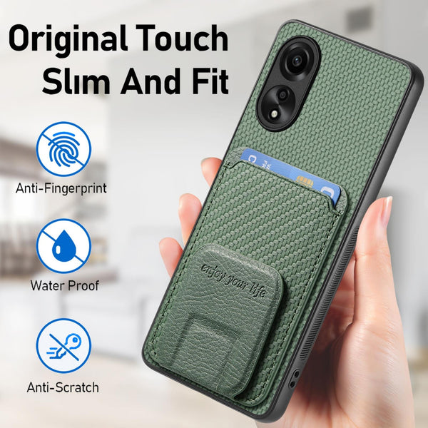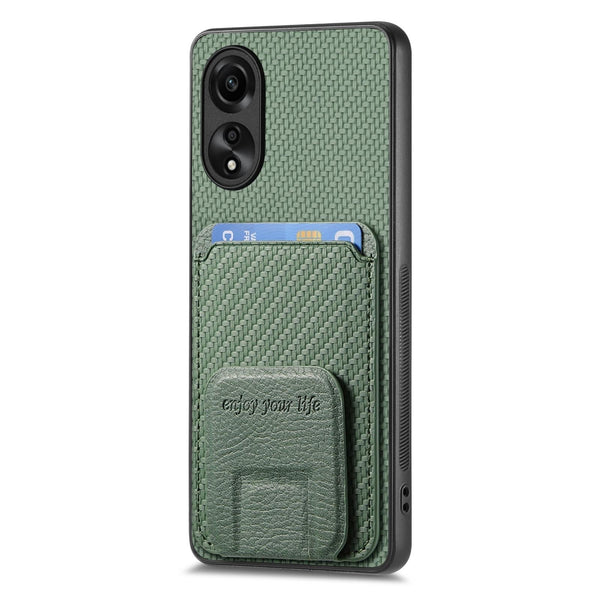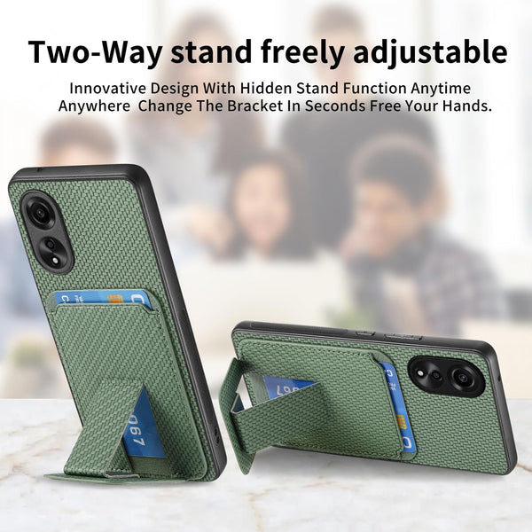 For OPPO Reno8 5G Carbon Fiber Card Bag Fold Stand Phone Case(Green)