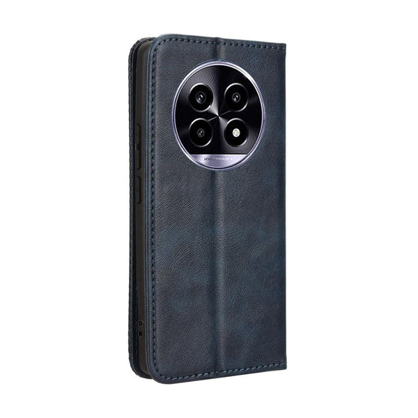 For Realme 13+ 5G Global Magnetic Buckle Retro Texture Leather Phone Case(Blue)