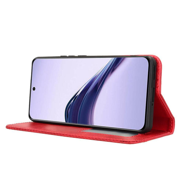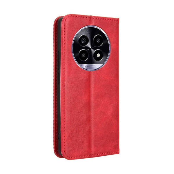 For Realme 13+ 5G Global Magnetic Buckle Retro Texture Leather Phone Case(Red)