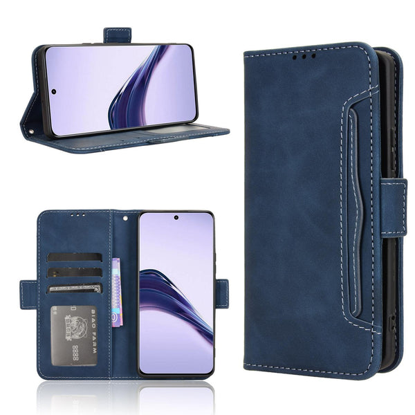 For Realme 13+ 5G Global Skin Feel Calf Texture Card Slots Leather Phone Case(Blue)
