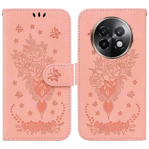 For Realme 13+ Global Butterfly Rose Embossed Leather Phone Case(Pink)
