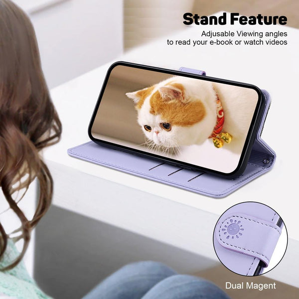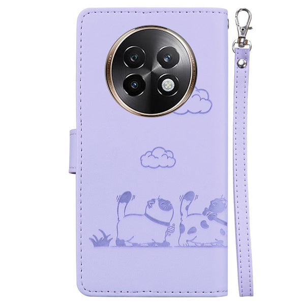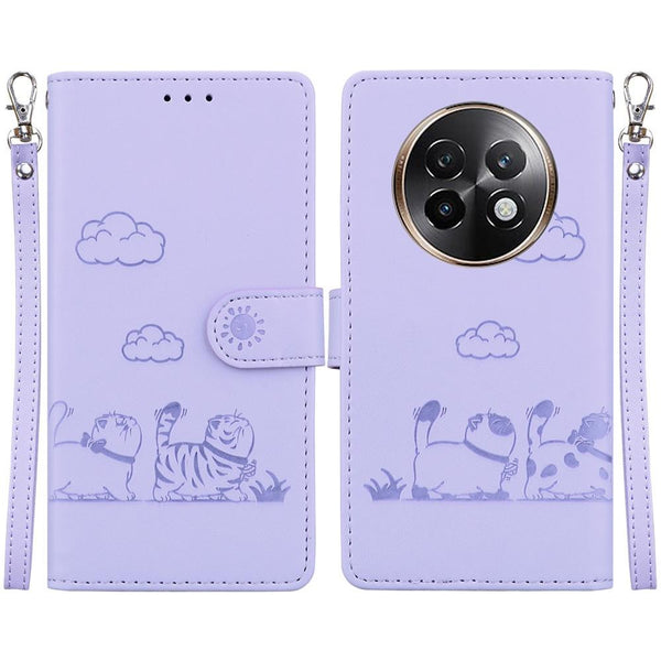 For Realme 13+ Global Cute Cats RFID Leather Phone Case(Purple)