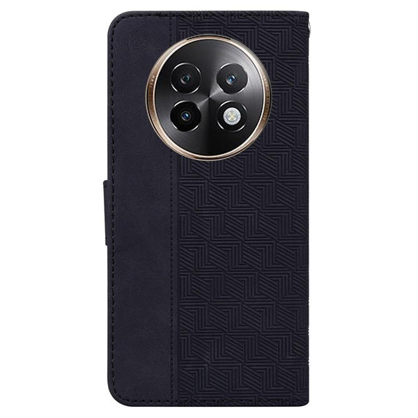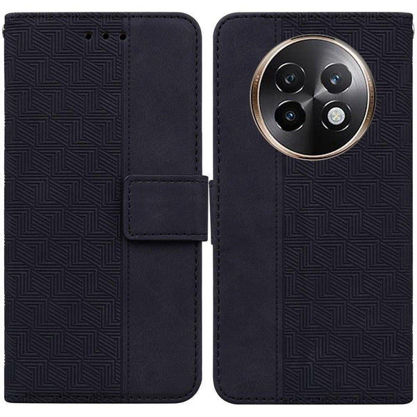 For Realme 13+ Global Geometric Embossed Leather Phone Case(Black)