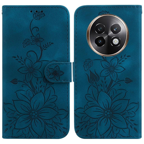 For Realme 13+ Global Lily Embossed Leather Phone Case(Dark Blue)