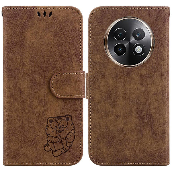 For Realme 13+ Global Little Tiger Embossed Leather Phone Case(Brown)