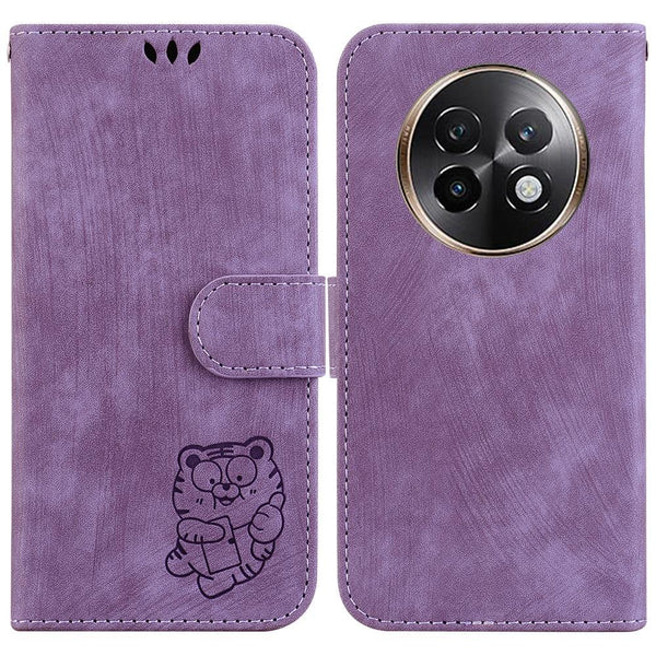For Realme 13+ Global Little Tiger Embossed Leather Phone Case(Purple)