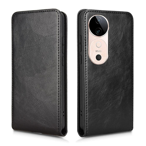 For vivo S19 Pro 5G Magnetic Vertical Flip Leather Phone Case(Black)