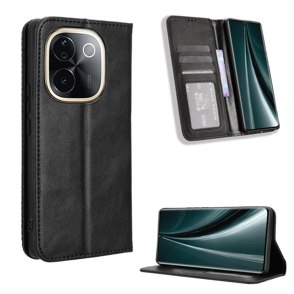 For vivo T3 Pro 5G / iQOO Z9S Pro 5G Magnetic Buckle Retro Texture Leather Phone Case(Black)