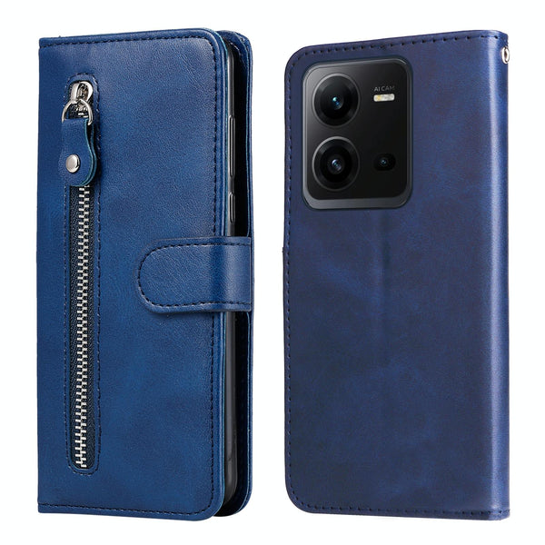 For vivo V25 5G/V25e 4G Calf Texture Zipper Leather Phone Case(Blue)
