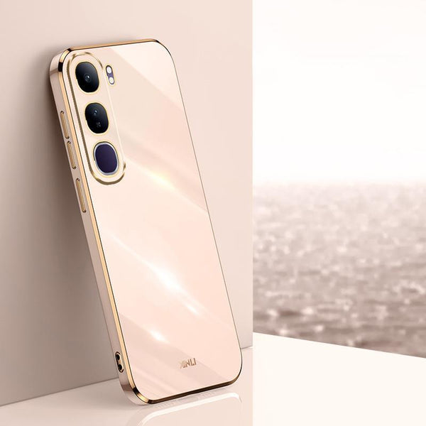 For vivo V40 Lite 5G XINLI Straight 6D Plating Gold Edge TPU Phone Case(Pink)