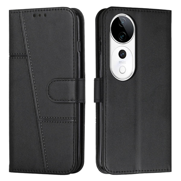 For vivo V40 / V40 Pro / T3 Ultra Stitching Calf Texture Buckle Leather Phone Case(Black)
