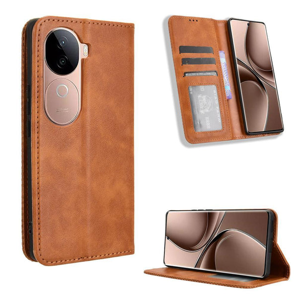 For vivo V40e 5G / iQOO Z9S 5G Magnetic Buckle Retro Texture Leather Phone Case(Brown)