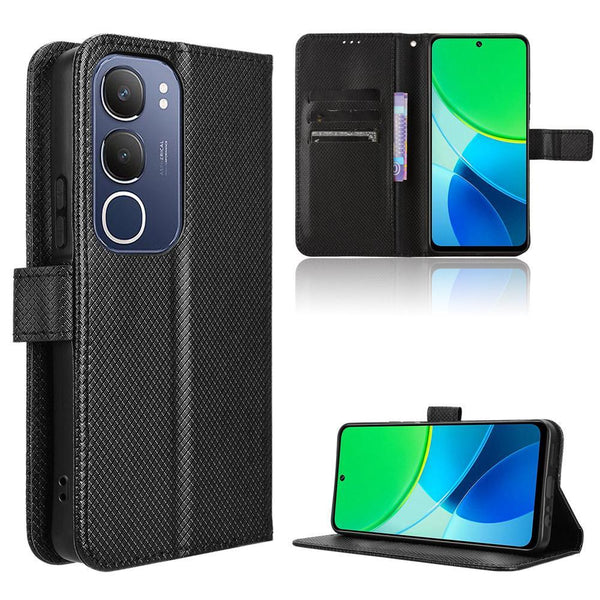 For vivo Y19s 4G Diamond Texture Leather Phone Case(Black)