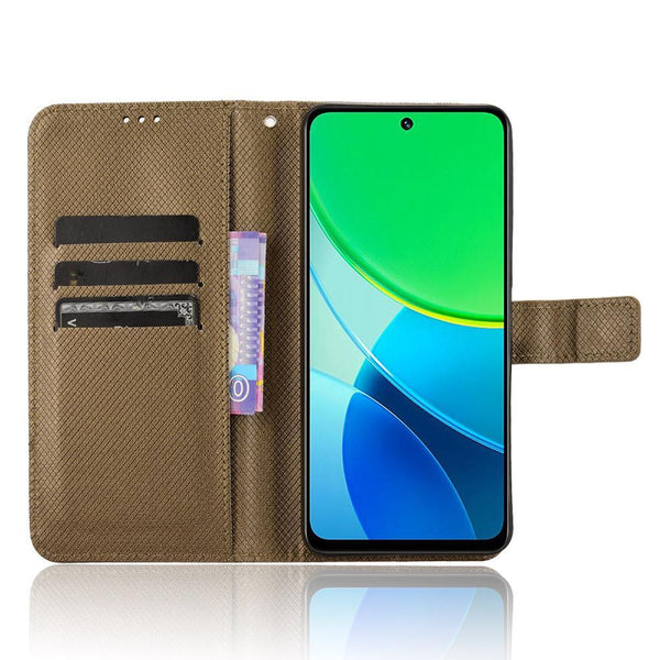 For vivo Y19s 4G Diamond Texture Leather Phone Case(Brown)
