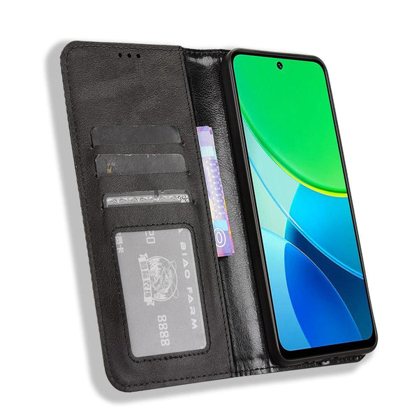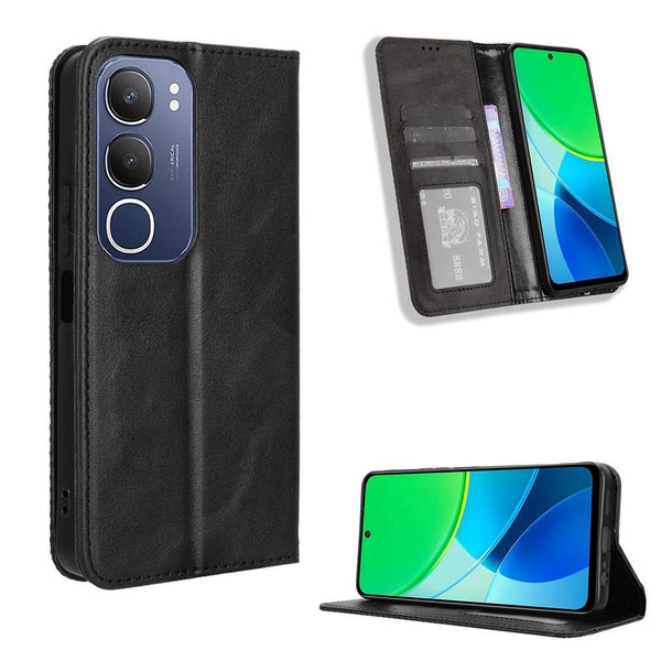 For vivo Y19s 4G Magnetic Buckle Retro Texture Leather Phone Case(Black)